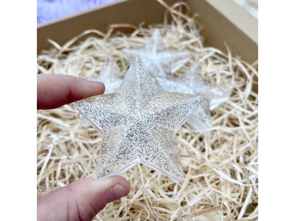Hvězdička je vyrobena z epoxidové pryskyřice a třpytek.