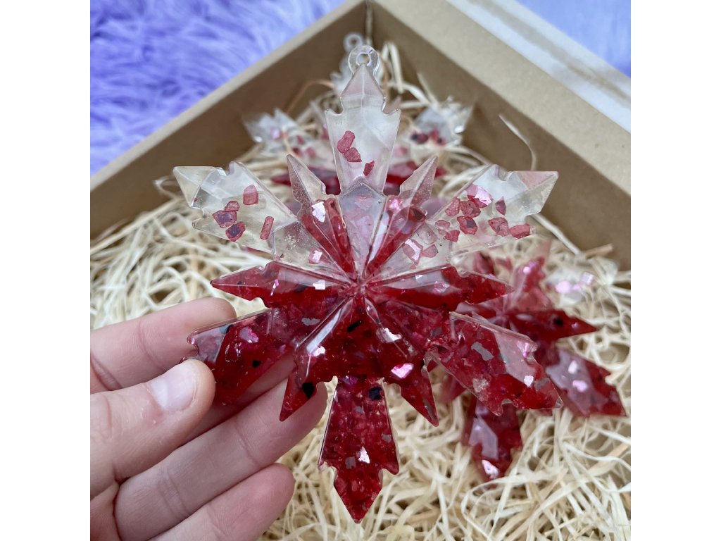 Sněhová vločka s drceným sklem - červená
