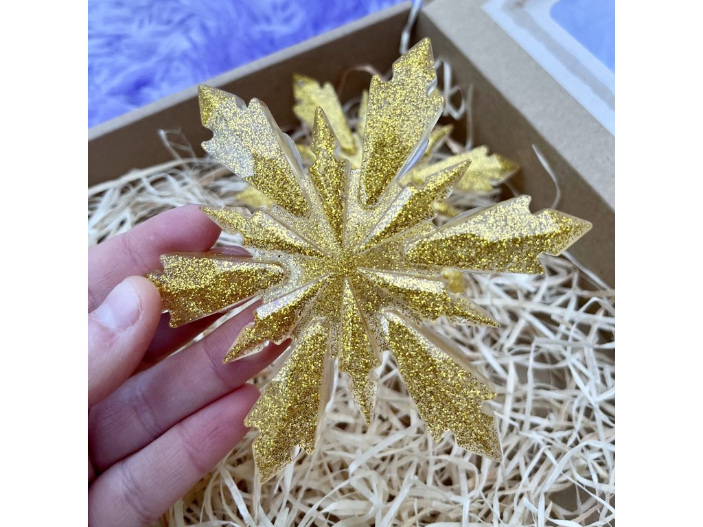 Ručně vyrobeno z epoxidové pryskyřice, pigmentu a třpytek.